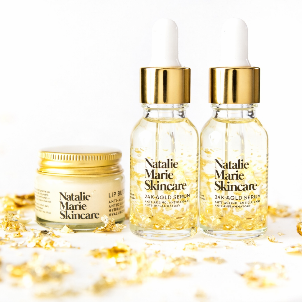 This set includes two Gold Serums alongside our Lip Butter, providing a practical supply for regular use without the need for frequent reordering. Used as part of a daily routine, it supports ongoing hydration, skin comfort and overall balance.